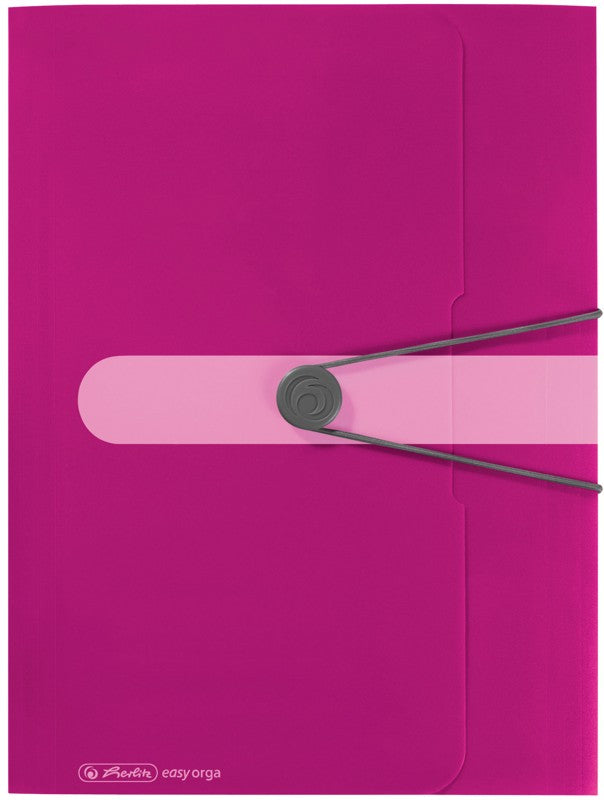 Mapa plastic A4 cu inchidere cu elastic Easy Orga, Herlitz 11216538, culoare roz, cu capacitate de indosariere pana la 300 coli, ideala pentru organizarea personala a cursurilor, notitelor si proiectelor scolare sau universitare.