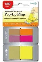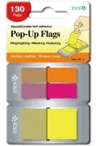 Index plastic transparent combinat 45x12mm si 45x25mm, 80 (2 x 40) + 50 file/set in 3 culori neon, pentru marcaje fine si zone de notare mai mari in acelasi set.