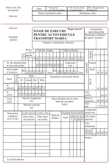 Foaie parcurs autovehicule marfa A4 FV 100 file pentru evidenta curselor si consumului de carburant.