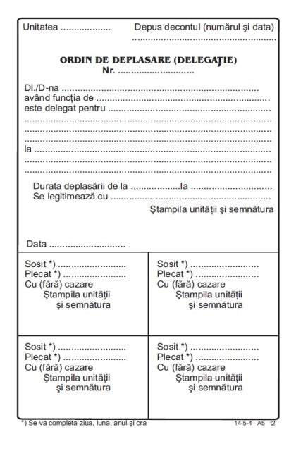 Ordin deplasare A5 FV carnet 100 file 14-5-4 pentru delegatii si deplasari interne.